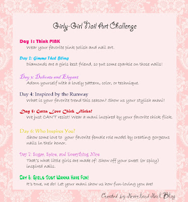 Hi everyone!! Today is day 6 of the Girly-Girl Challenge, and our assignment is to do some nails in honor of a woman who inspires us. I knew who I would choose right away... my Mom!!