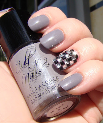 I have 2 coats of Cult Nails My Kind of Cool Aid on my nails for this look. I really like this color! It is a nice purpley grey, with a subtle shimmer. I borrowed this from my friend Jacki from Adventures in Acetone, and I think I need to add this to my own collection now!