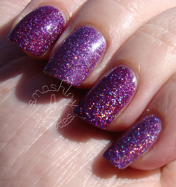 Hi lovelies! Today I have a quick comparison post for you... these are two purple scattered holos. On the index and ring finger I have two coats of Zoya Aurora, and on the middle and pinkie I have two coats of Linda Johansen Razzle Dazzle.