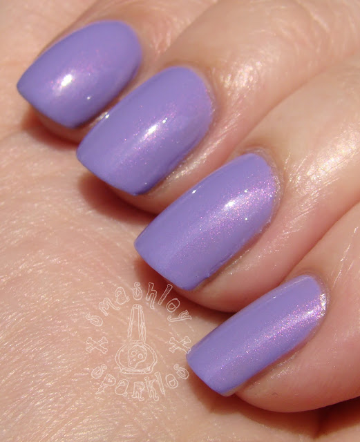 First up is my personal favorite, Purdy. Purdy is a gorgeous lilac with a pink shimmer. I love the color of this one, and when I wore it with a glitter topper I didn't have any chips for something like 3 days, which is practically miraculous for me. This one dries semi-matte.