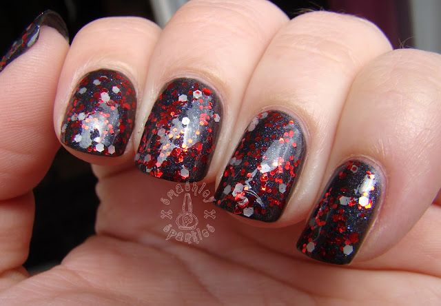 This is such a gorgeous polish! I'm seeing a lot of dark polishes with glitter and speckles in it, it will be very popular this autumn.