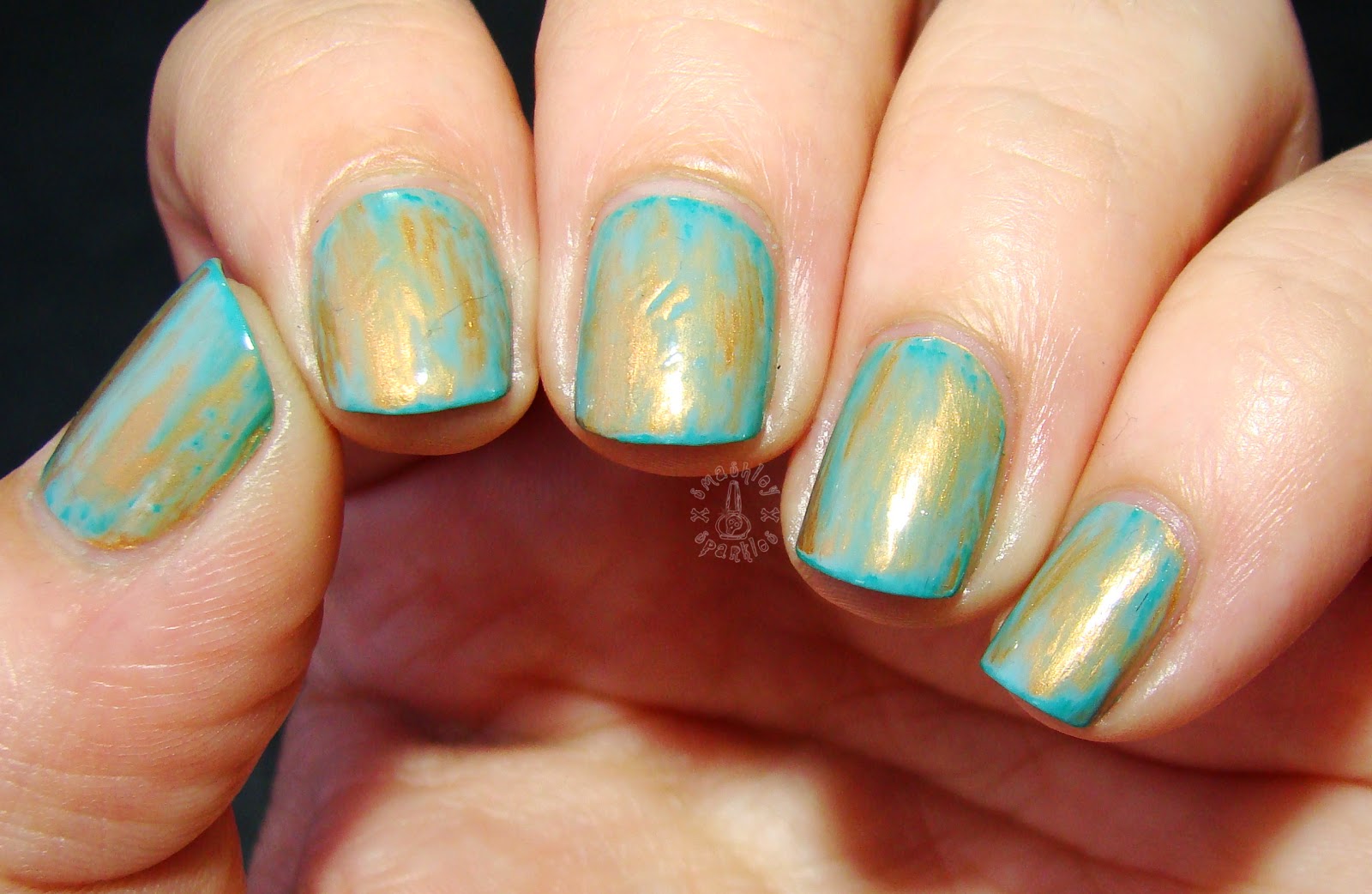 ReplyI think this looks really cool! It reminds me of one of those old fountains you'll see outside where the metal has oxidized and ends up looking just like your nails. :)